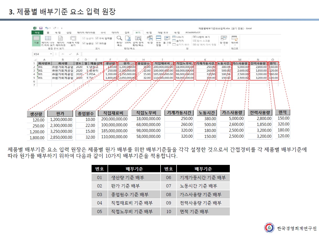 3. 제품별 배부기준 요소 입력 원장