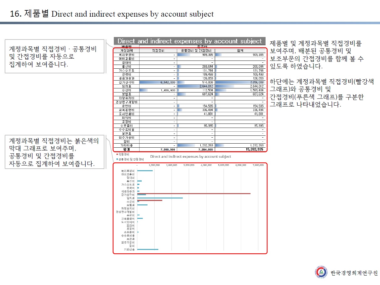 16. 제품별 Direct and indirect expenses by account subject