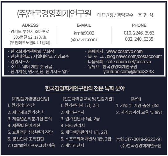 '원가컨설팅--★★' 카테고리의 다른 글